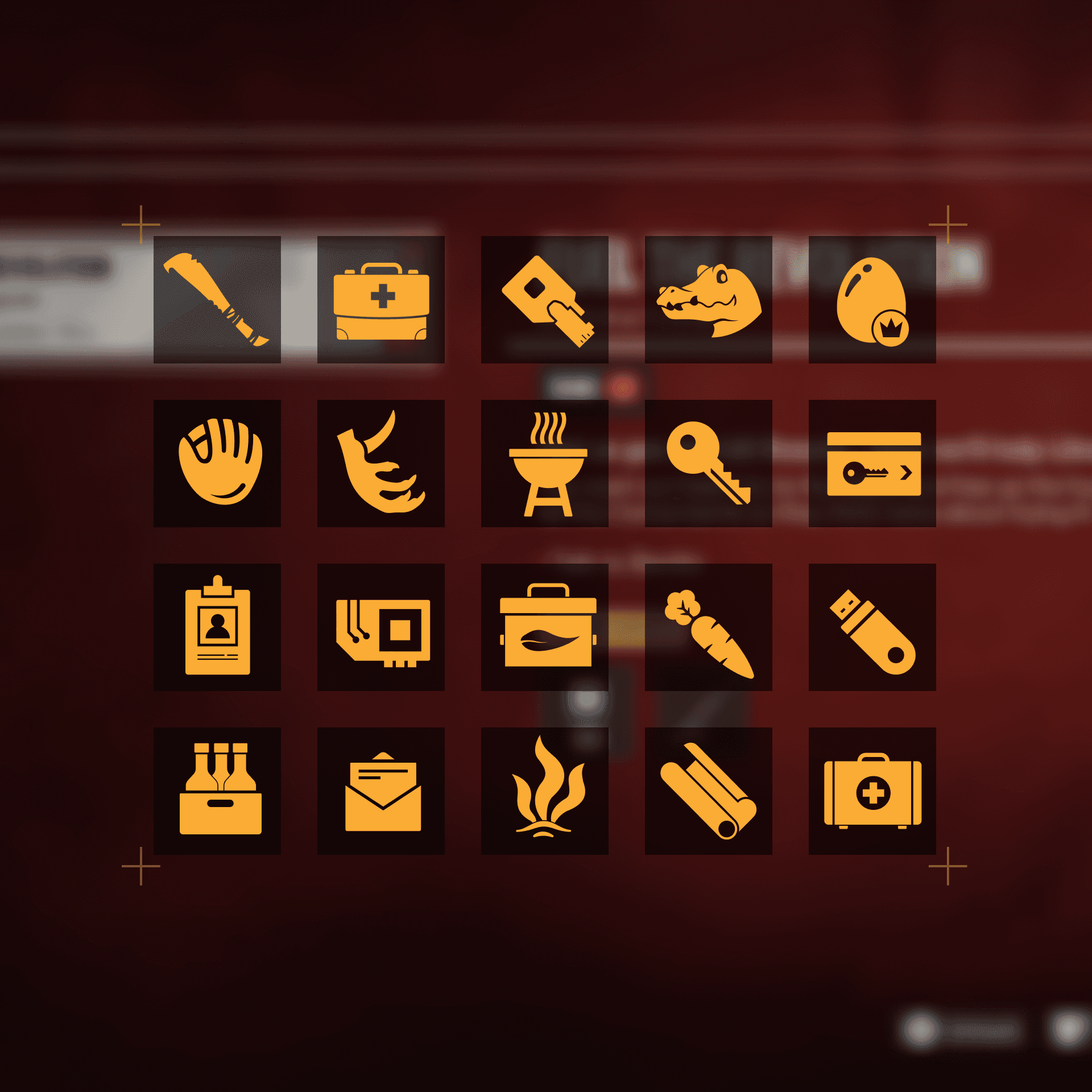 For Far Cry 6, I created a library of icons for inventory items, live challenges and resources. These icons were based on early-stage art direction, focusing on a 3D realistic render style, alongside expressive 2D iconography.